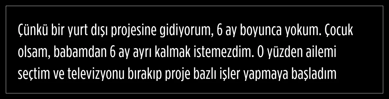 Evlendikten sonra bir seçim yapmak zorunda olduğunu ifade eden "Ya ailemi ya da televizyonu seçecektim" dedi.