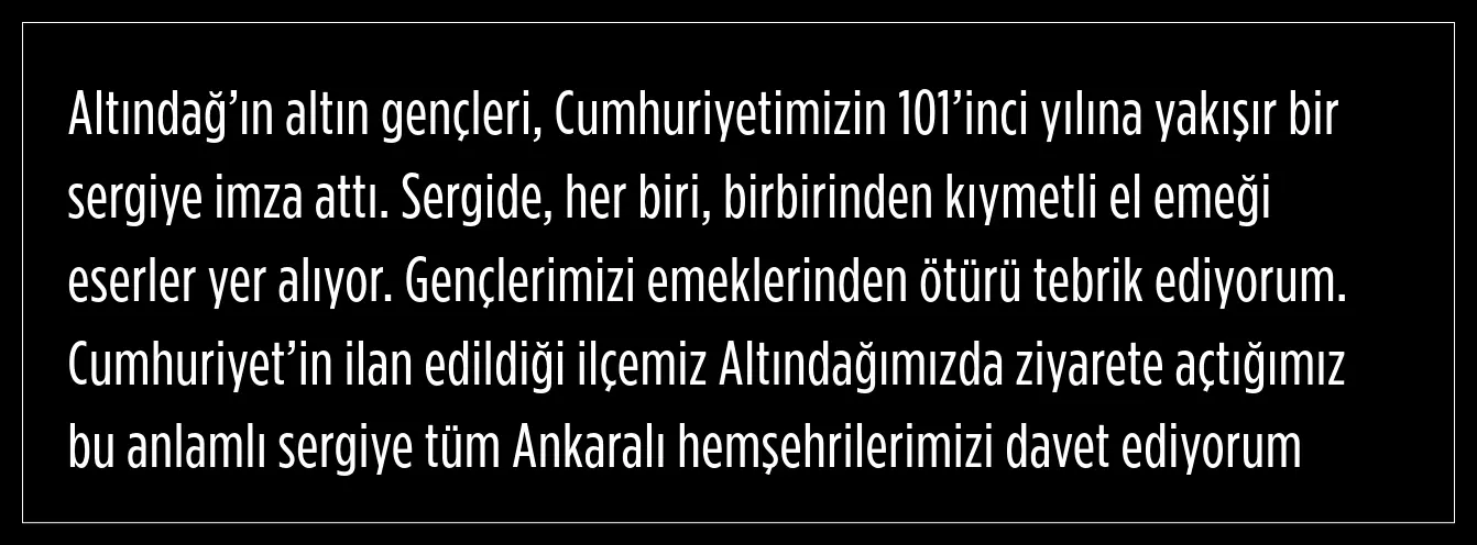 Altındağ Belediyesi, Cumhuriyet’in 101’inci yıl dönümü kapsamında anlamlı bir sergiyi vatandaşlarla buluşturdu.
