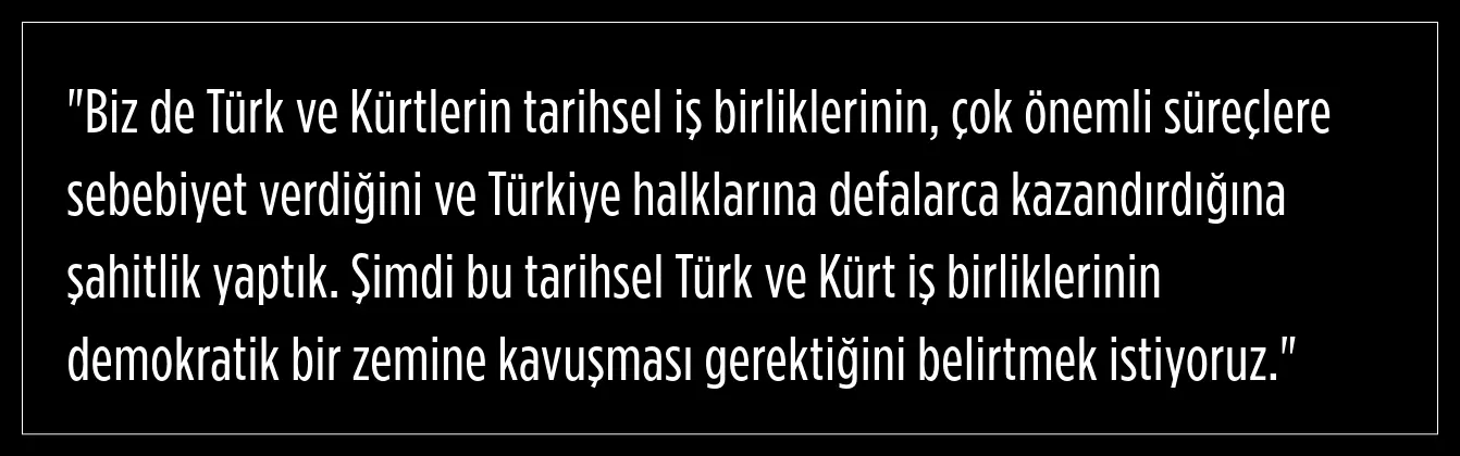 Bakırhan, Türkler ile Kürtler arasındaki tarihsel iş birliklerinin oldukça kritik süreçleri beraberinde getirdiğini aktarırken söz konusu iş birliklerinin demokratik bir zemin kazanması yönünde çağrıda bulundu: