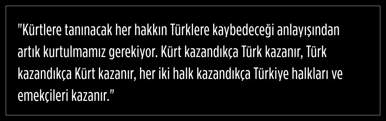 "Kürtlere tanınacak hakların Türkler için kayıp anlamına geleceği" anlayışından vazgeçilmesi gerektiğini belirten Bakırhan, bir tarafın kazanması halinde diğer tarafın da kazanacağını şu ifadelerle dile getirdi: