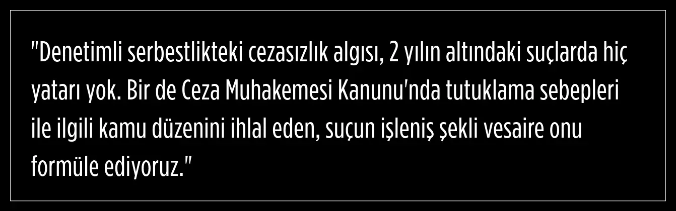 Suç gerçekleştiği zaman tutuklama nedeni ile ilgili infial yaşandığını aktaran Tunç, sanığın önceki zamanlarda suç işleme eğilimine sahip olup olmadığı ve kamu düzenini bozan suçun nasıl işlendiği konularının caydırıcılık bakımından değerlendirilmesi gerektiğini belirtti.