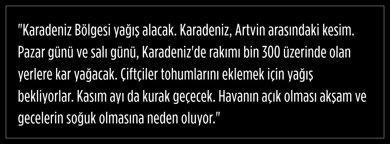 Karadeniz'in yüksek bölgelerinde kar yağışının beklendiğini aktaran Dilek Çalışkan, şunları söyledi: