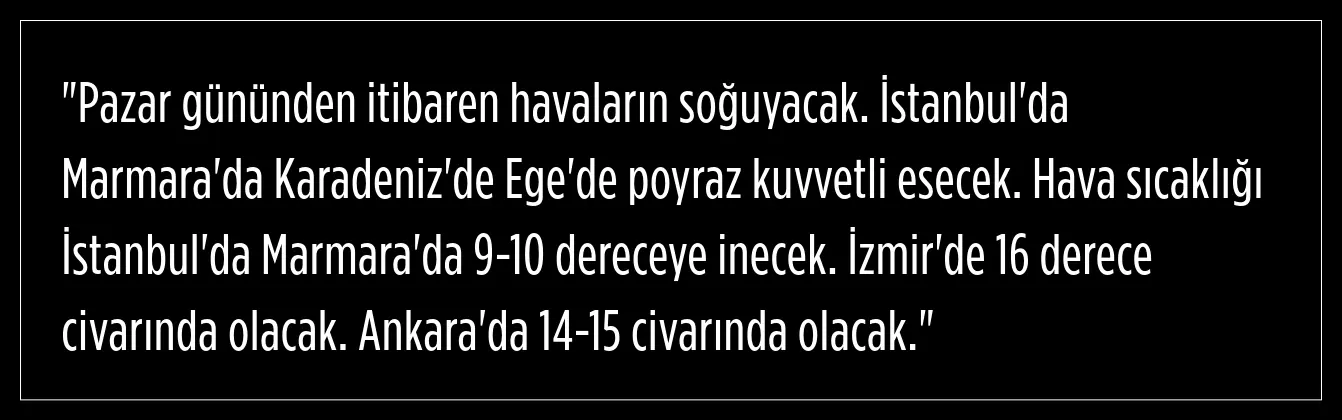 Meteorolojinin tahminlerine göre, pazar gününden itibaren sıcaklıklarda belirgin bir düşüş yaşanacak.