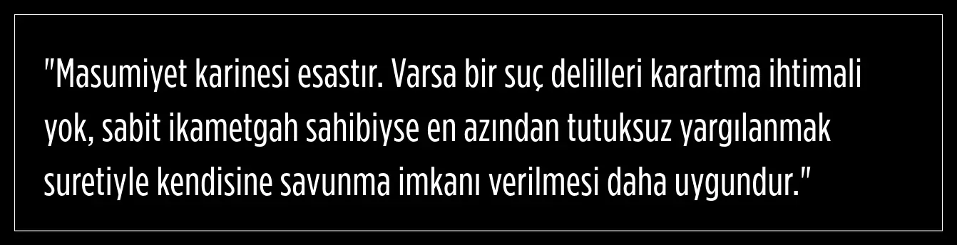 Yavaş, masumiyet karinesinin esas olduğunu belirterek sabit ikâmetgah sahibi olması halinde tutuksuz yargılanma yoluyla Ahmet Özer'e savunma fırsatı verilmesinin daha uygun olduğunu şu sözlerle dile getirdi: