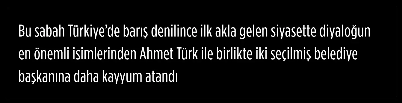 Ahmet Türk'ün yerine Mardin Valisi Tuncay Akkoyun, Gülistan Sönük de Batman Valisi Ekrem Canalp ve Halfeti Kaymakamı Hakan Başoğlu ise Halfeti'de başkanvekili olarak görev yapacak.