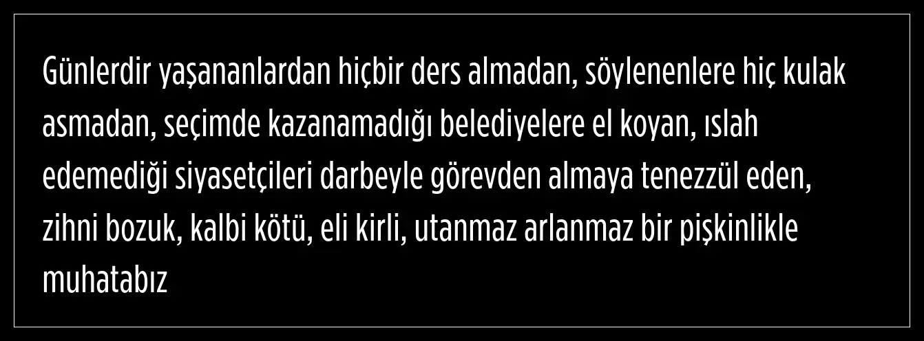 Eli kirli, utanmaz arlanmaz bir pişkinlikle muhatabız