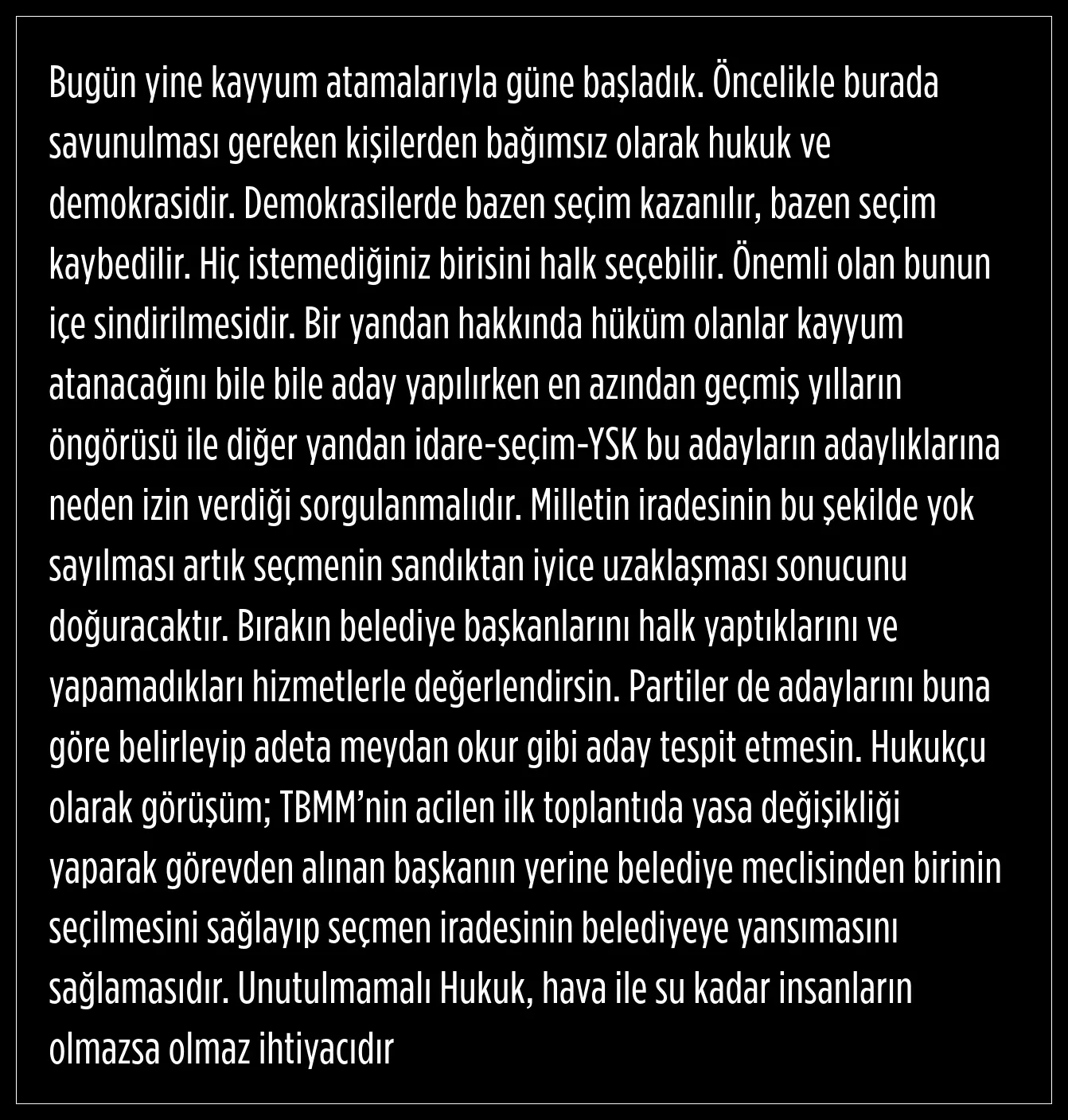 Unutulmamalı Hukuk, hava ile su kadar insanların olmazsa olmaz ihtiyacıdır
