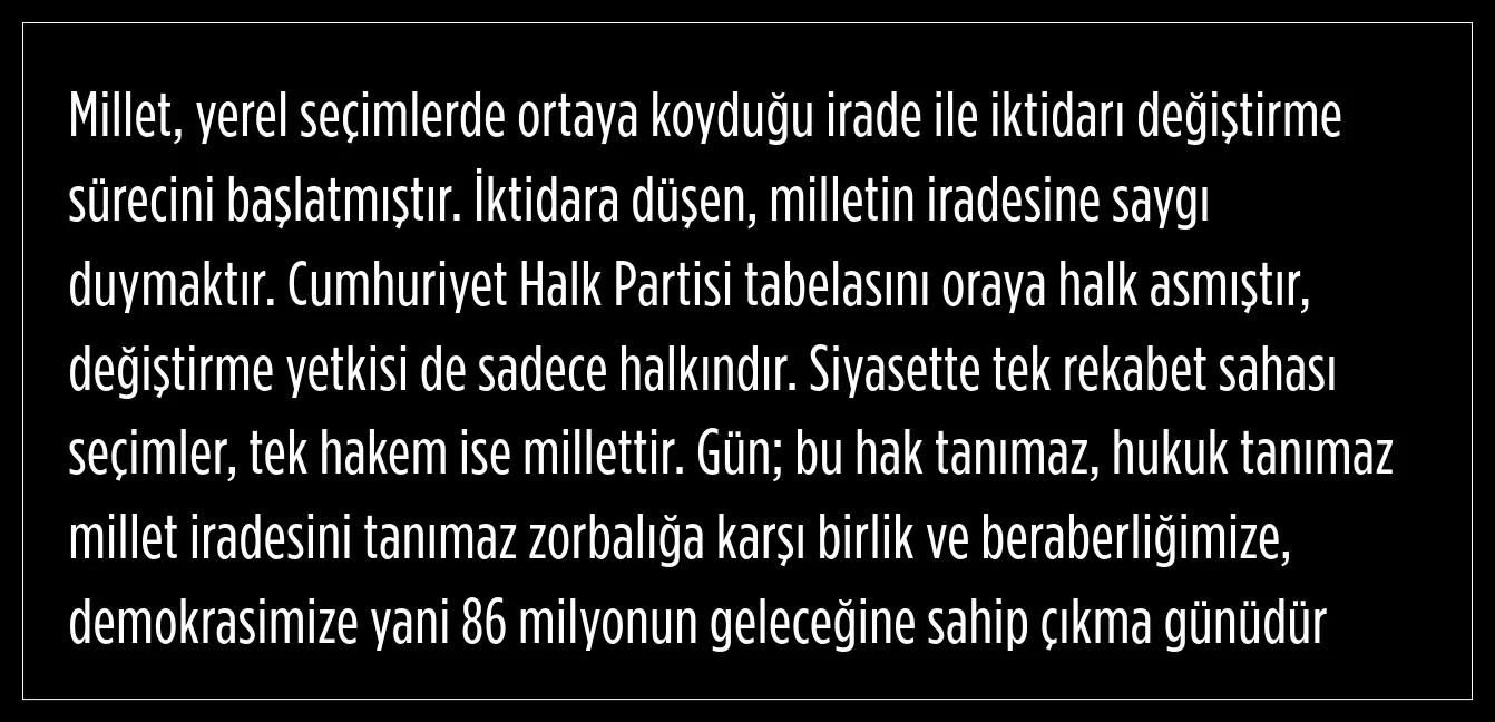 Özel, milletin yerel seçimlerde ortaya koyduğu irade ile iktidarı değiştirme sürecini başlattığını söyledi.