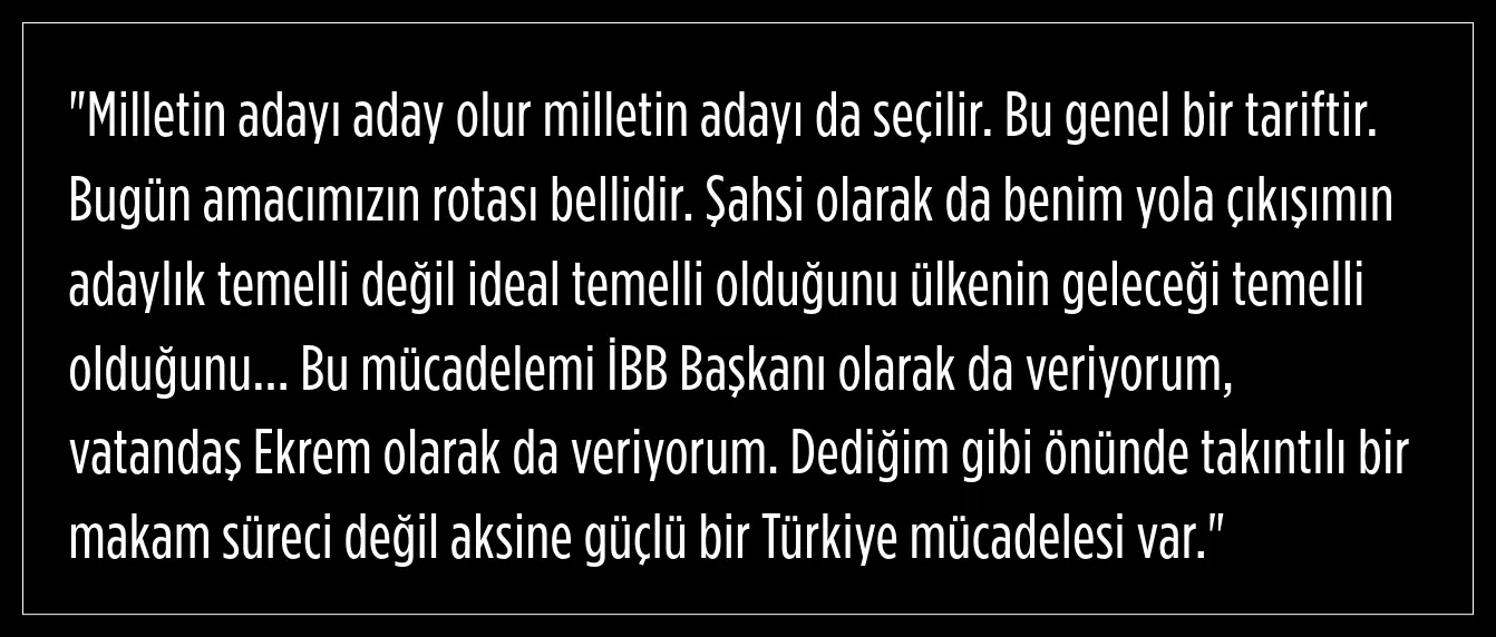 Türkiye'nin cumhurbaşkanı adayının seçkinler tarafından değil millet tarafından belirlendiğini ifade eden İmamoğlu, şu ifadeleri kullandı: