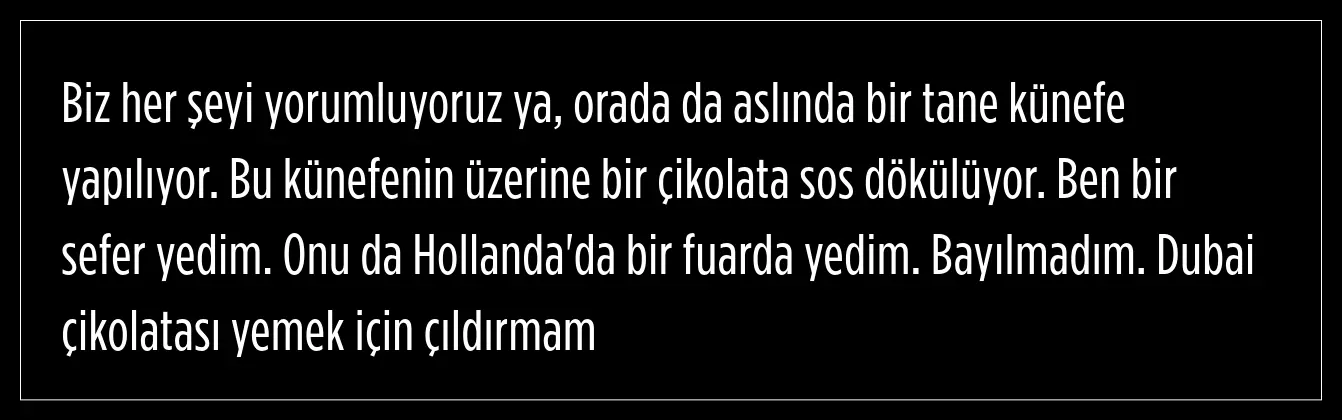 Dubai çikolatasını "çikolatalı künefe" olarak ifade eden Mehmet Yalçınkaya ise şunları söyledi: