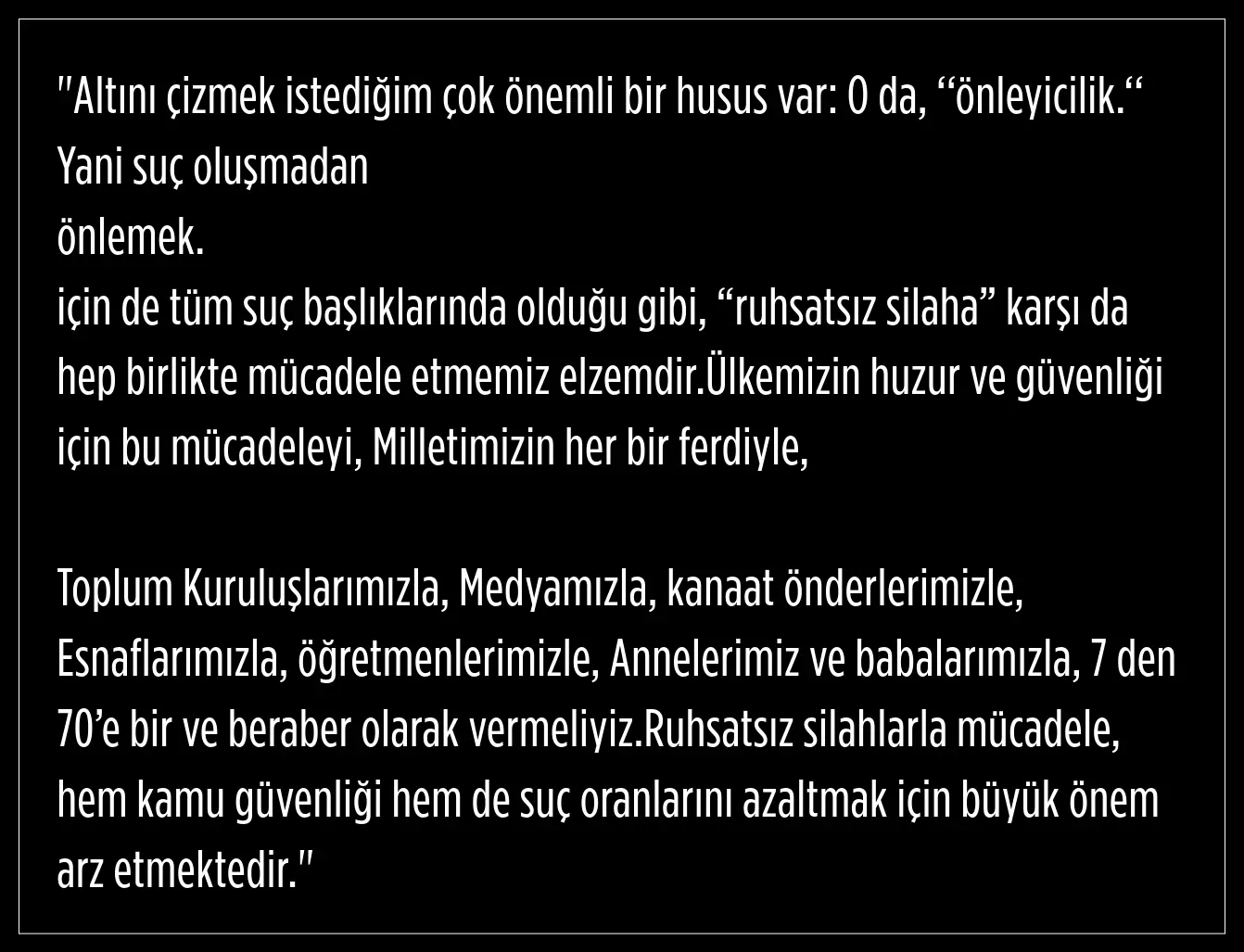 81 ilde son 1 hafta içinde “Ruhsatsız Silah Taşıyanlara” ve “Silah Kaçakçılarına” yönelik düzenlenen “MERCEK-27” operasyonlarında, 2 bin 274 silah ele geçirildi. 1.664 şüpheli şahıs hakkında işlem yapıldı.