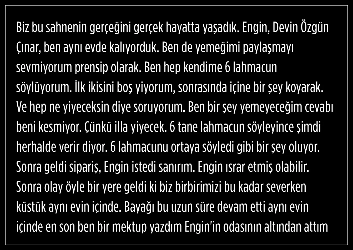 Kaya, Engin Günaydın ile aynı evde yaşadıklarını ve lahmacun nedeniyle tartıştıklarını ve uzun süre aynı evde küs kaldıklarını söyledi.