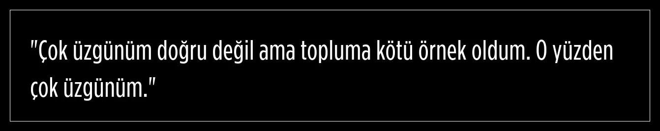 Serdar Ortaç, gazetecilere yaptığı açıklamada, topluma kötü örnek olduğu için çok üzgün hissettiğini belirterek bu olayın kendisini derinden etkilediğini şu sözlerle dile getirdi:
