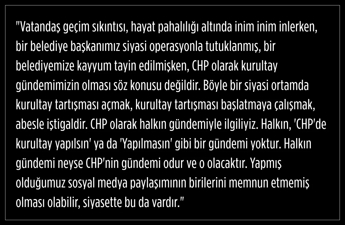 CHP Genel Başkan Yardımcısı Deniz Yücel, kurultaya gidileceği iddialarına şöyle yanıt verdi:
