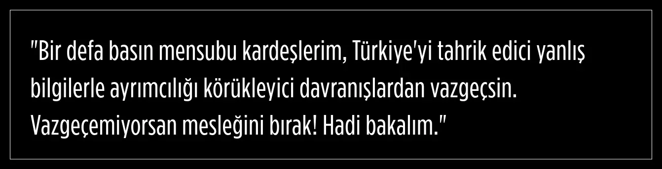 Bahçeli, soruya sert bir yanıt vererek bu tür soruları Türkiye'yi tahrik edici ve yanlış bilgi içeren söylemler olarak değerlendirdi ve gazeteciye de ayrımcılığı körükleyici davranışlardan uzak durması gerektiğini söyledi.