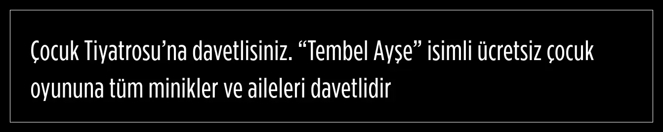 Lale Konferans Salonu'nun ev sahipliği yapacağı “Tembel Ayşe” isimli oyunu saat, 13.00 ve 15.00'te olacak.