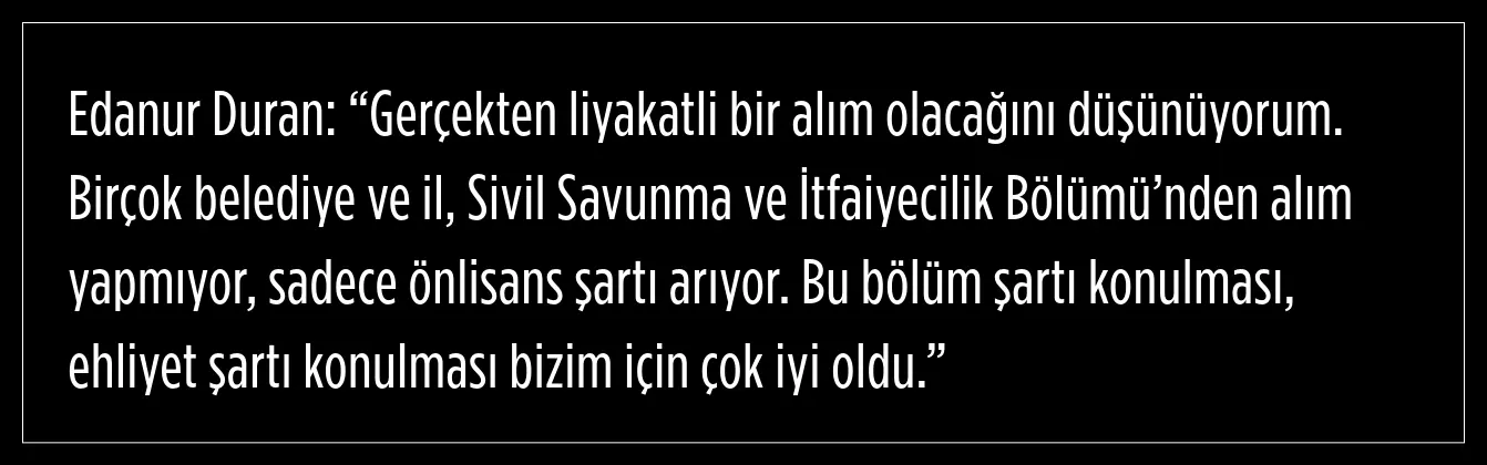 Türkiye’nin çeşitli şehirlerinden gelen adaylar, ABB'nin (Ankara Büyükşehir Belediyesi) liyakat esaslı personel alım politikasını olumlu bulduklarını belirtti. Başvuru yapan adaylardan biri olan Edanur Duran, birçok belediyenin yalnızca ön lisans şartı arayarak alım yaptığını ancak ABB’nin (Ankara Büyükşehir Belediyesi) Sivil Savunma ve İtfaiyecilik Bölümü mezunlarına öncelik tanımasının önemli bir adım olduğunu söyledi.