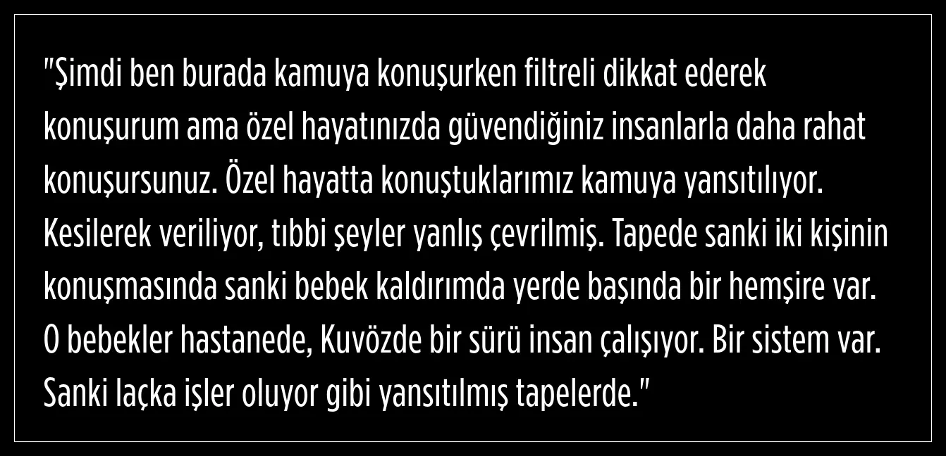 Savunmasında tape kayıtlarının çarpıtıldığını öne süren Sarı, özel hayatta yapılan konuşmaların bağlamından koparıldığını belirtti. Sarı, tapelerin yanlış çevrildiğini ve gerçek dışı bir algı yaratıldığını iddia ederek şunları söyledi: