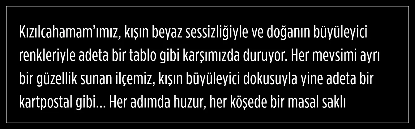 Etkili kar yağışı sonrası, Soğuksu Milli Parkı başta olmak üzere ilçenin birçok noktasında kartpostallık manzaralar ortaya çıktı. Kaplıcalarıyla da ünlü olan Kızılcahamam, hem doğal güzellikleri hem de temiz havasıyla kar tutkunlarını kendine çekiyor.