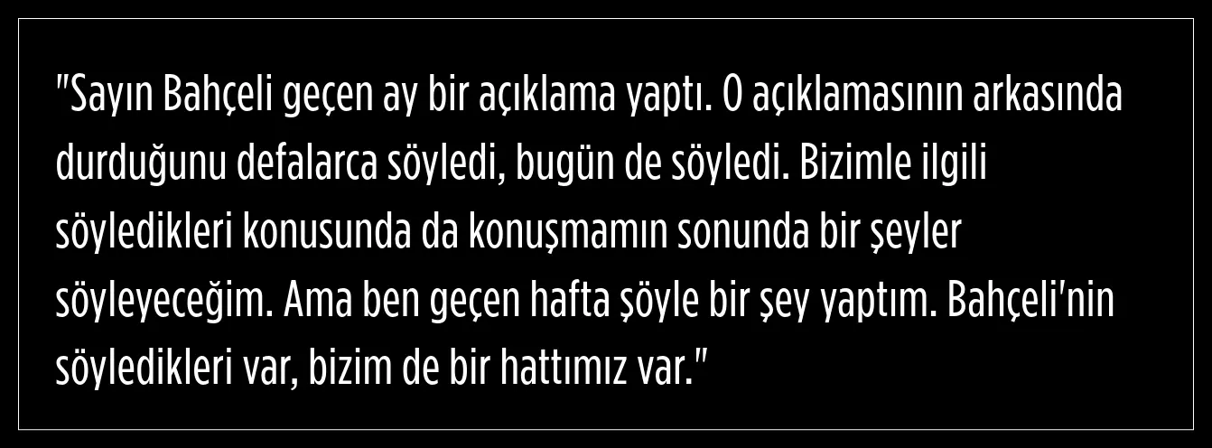 Bahçeli, İmralı ile DEM Parti (Halkların Eşitlik ve Demokrasi Partisi) arasında yüz yüze bir görüşme gerçekleştirilmesi yönünde bir çağrıda bulundu. Bunun üzerine DEM Parti (Halkların Eşitlik ve Demokrasi Partisi) tarafından İmralı'ya gitmek üzere Adalet Bakanlığına başvuruda bulunuldu.