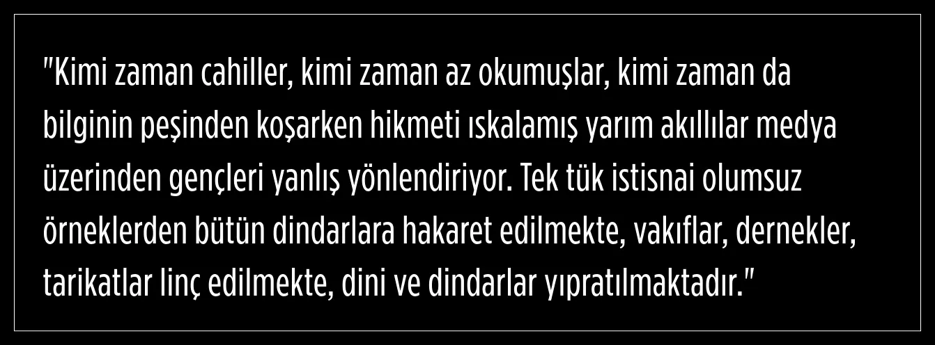 Erdoğan, medya üzerinden yapılan propagandaların, dini kurum ve kişilere zarar verdiğini şu sözlerle dile getirdi: