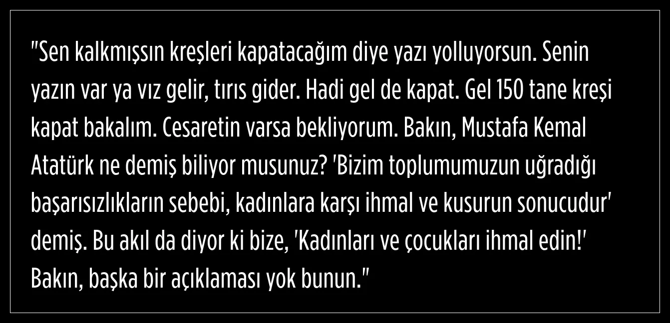 Kreşlerle ilgili gönderilen yazının oldukça açık ve net olduğunu dile getiren Tekin, Belediye Kanunu'na göre belediyelerin kreş açma hakkına sahip olduklarını ancak kreş adı altında anasınıfı ve anaokulu açma yetkisine sahip olmadıklarını söyledi. Tekin, bu nedenle yazının kreşlerle ilgili olmadığını belirterek Anayasa Mahkemesi tarafından verilen kararı uyguladıklarını ve bunun da CHP'ye (Cumhuriyet Halk Partisi) hatırlatıldığını dile getirdi.