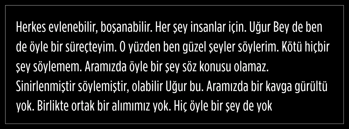Boşanma davası açmasının ve boşanma istediğinin tek sebebinin mutsuz olması olduğunu belirten Akkuş'un "Her şey para ve maddiyatmış!" sözleri oldukça konuşulmuştu.
