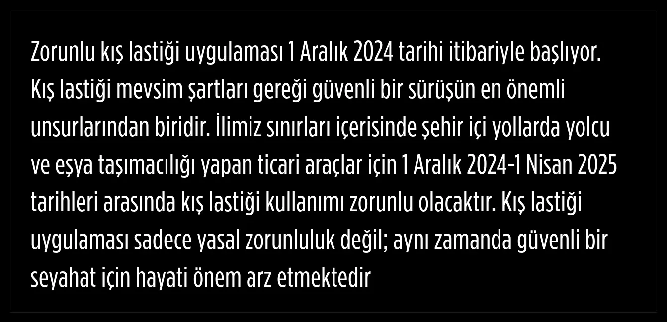 "KIŞ LASTİĞİ KULLANIMI ZORUNLU OLACAKTIR"