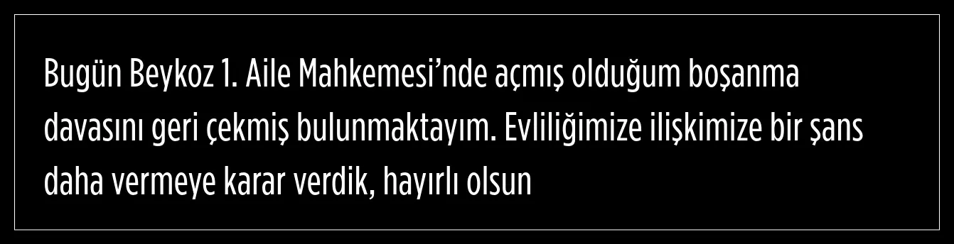 Ünlü model, Beykoz 1. Aile Mahkemesi’ne açtığı boşanma davasını geri çektiğini ifade etti.