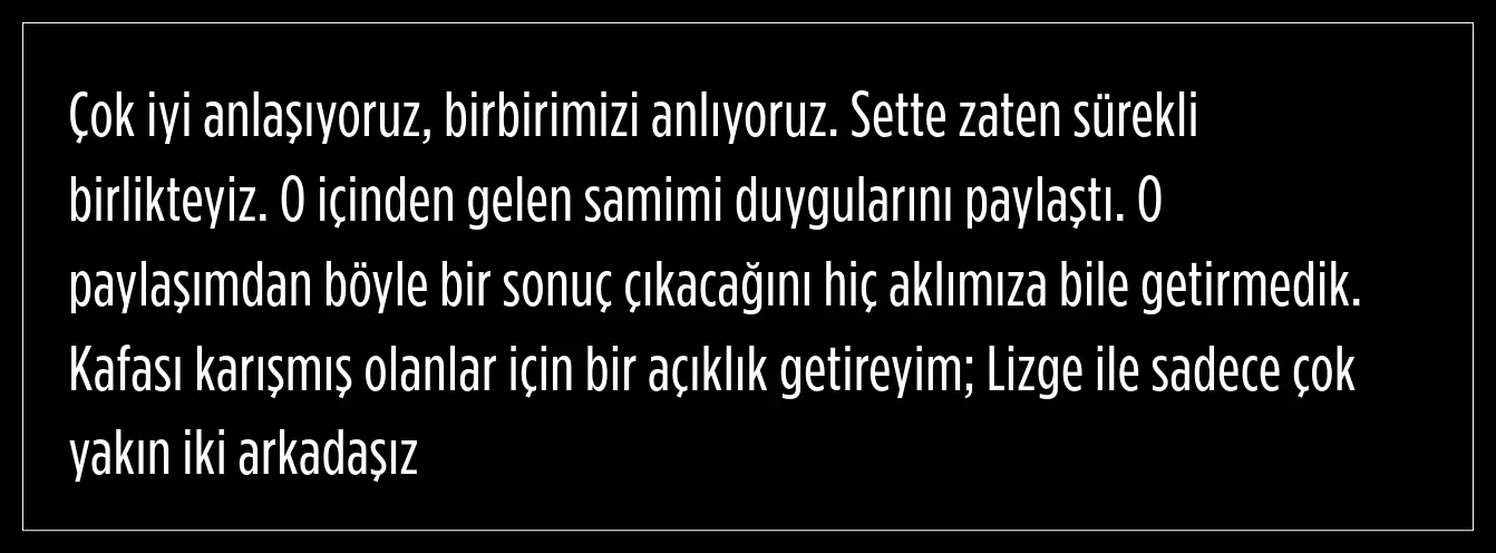 Bilal Yiğit Koçak daha önce bir röportajında Lizge Cömert ile çok yakın arkadaş olduklarını belirterek şunları söylemişti;