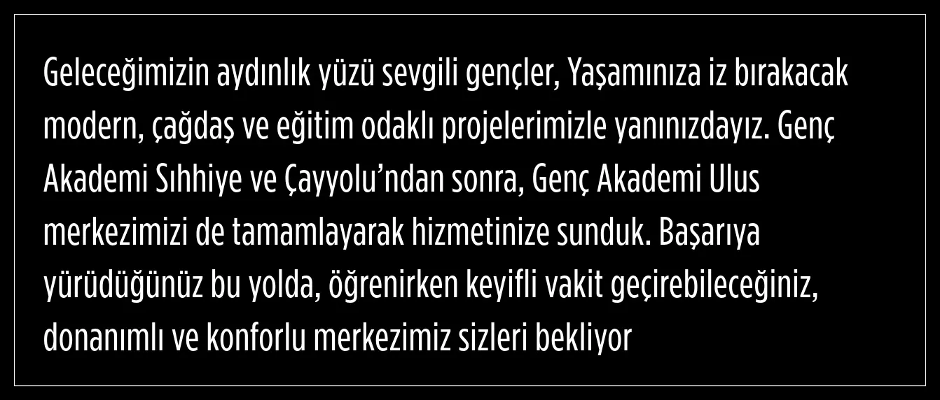 Ankara Büyükşehir Belediyesi tarafından öğrenciler için hayata geçirilen gençlik merkezlerine bir yenisi eklendi. Merkezin yeni adresi, Ulus oldu.
