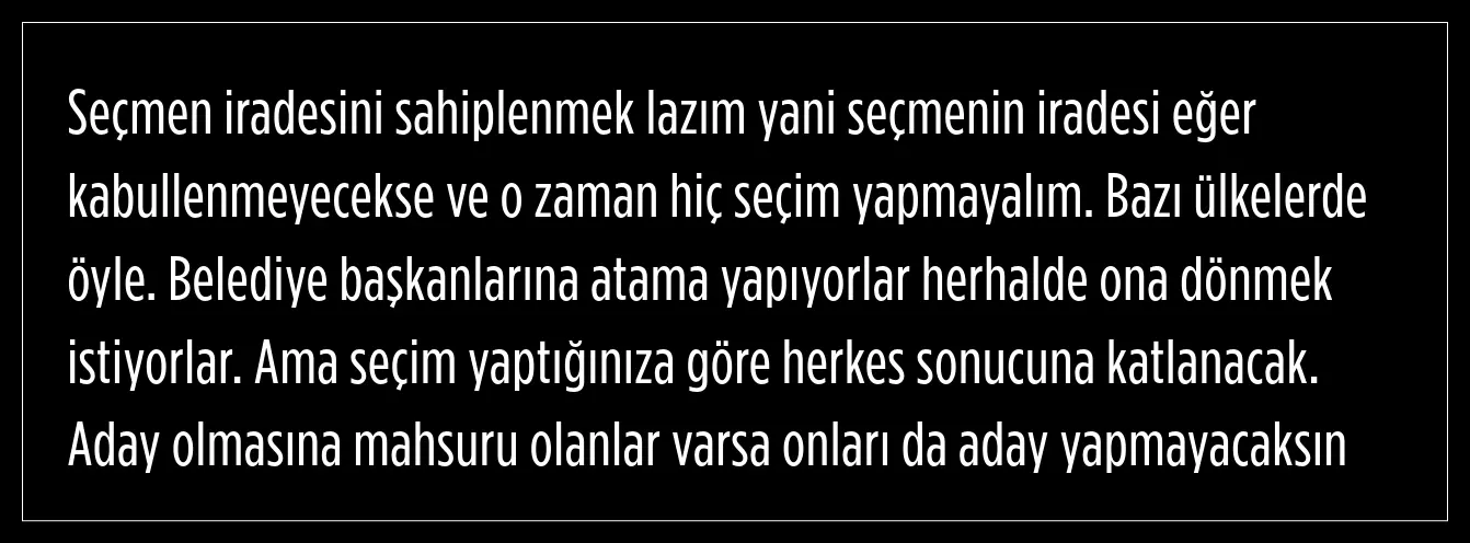 "Aday olmasına mahsuru olanlar varsa onları da aday yapmayacaksın"