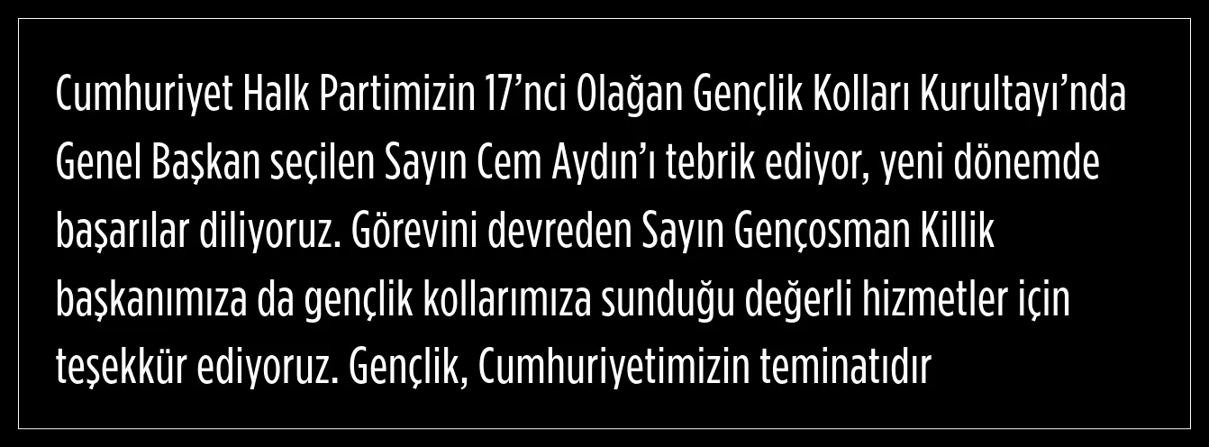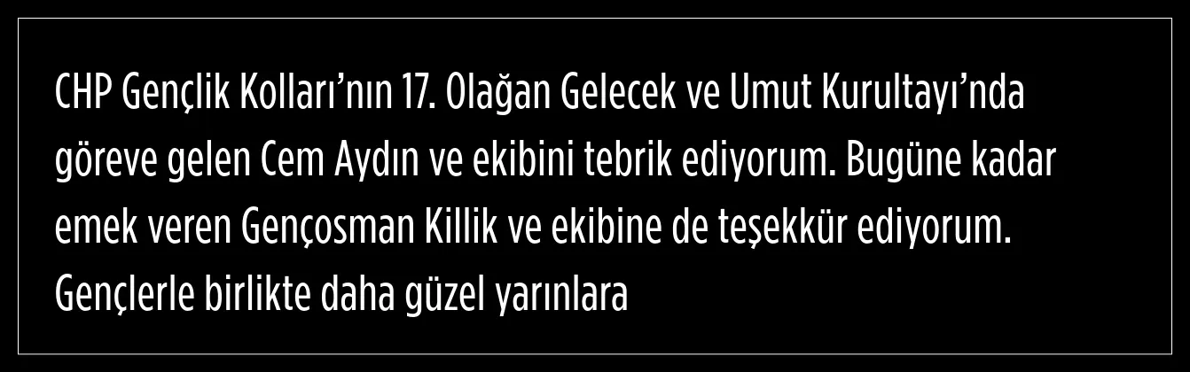 Yavaş, Gençlik Kolları Genel Başkanlığı'na seçilen Cem Aydın ve ekibini tebrik ettiğini ifade etti.