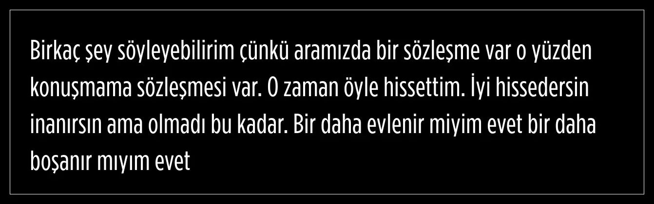 Şarkıcı, Mehmet Dinçerler ile aralarında konuşmama sözleşmesi olduğunu ifade etti.