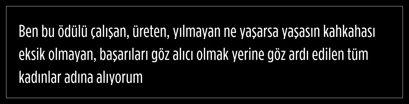 Ben bu ödülü tüm kadınlar adına alıyorum