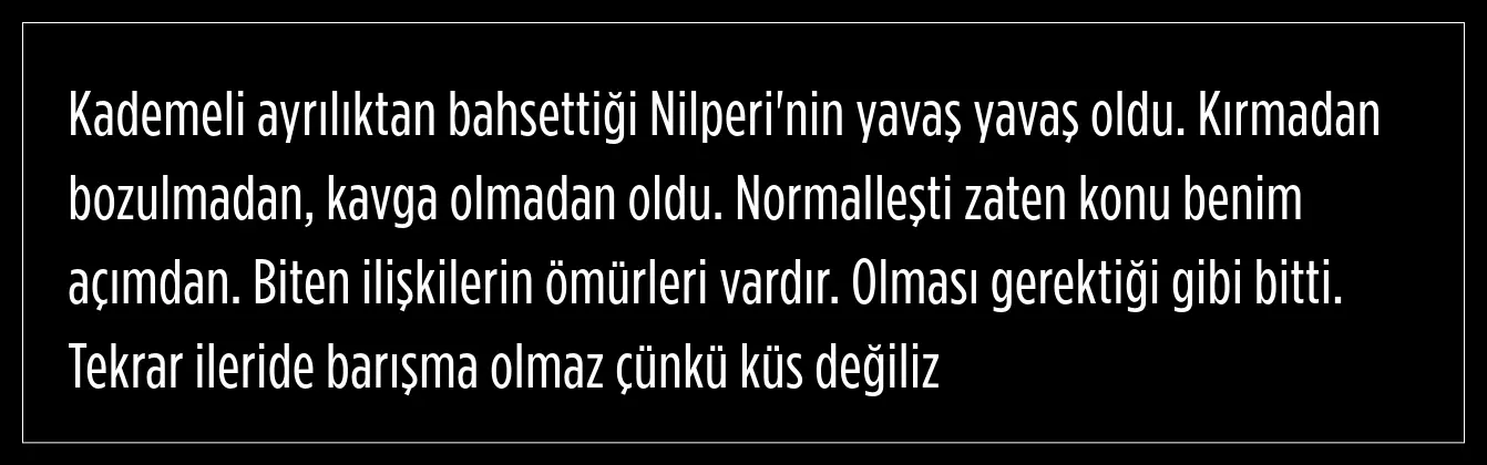 Nilperi Şahinkaya'dan ise "kademeli" ayrılık çıkışı gündeme geldi. Güzel oyuncu, şunları söyledi: