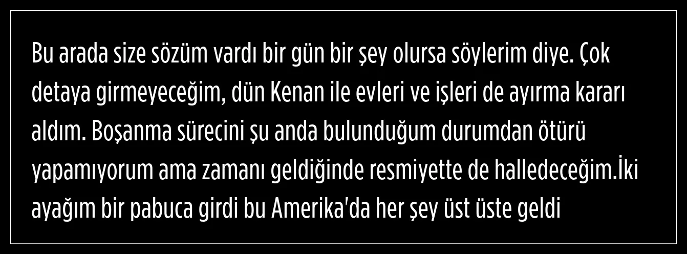 Eylül Öztürk, çok detaya girmeyeceğini söyleyerek, eşi Kenan'la evleri ve işleri ayırma kararı aldıklarını belirtti.