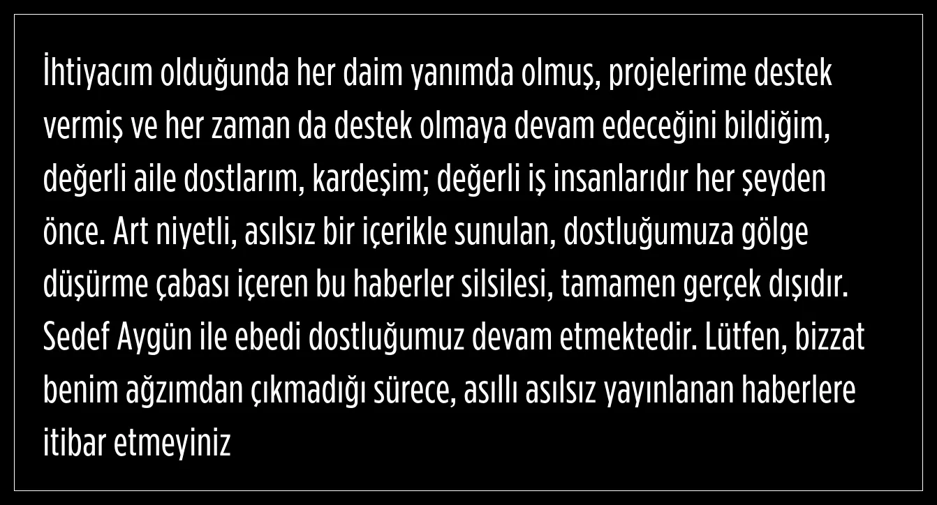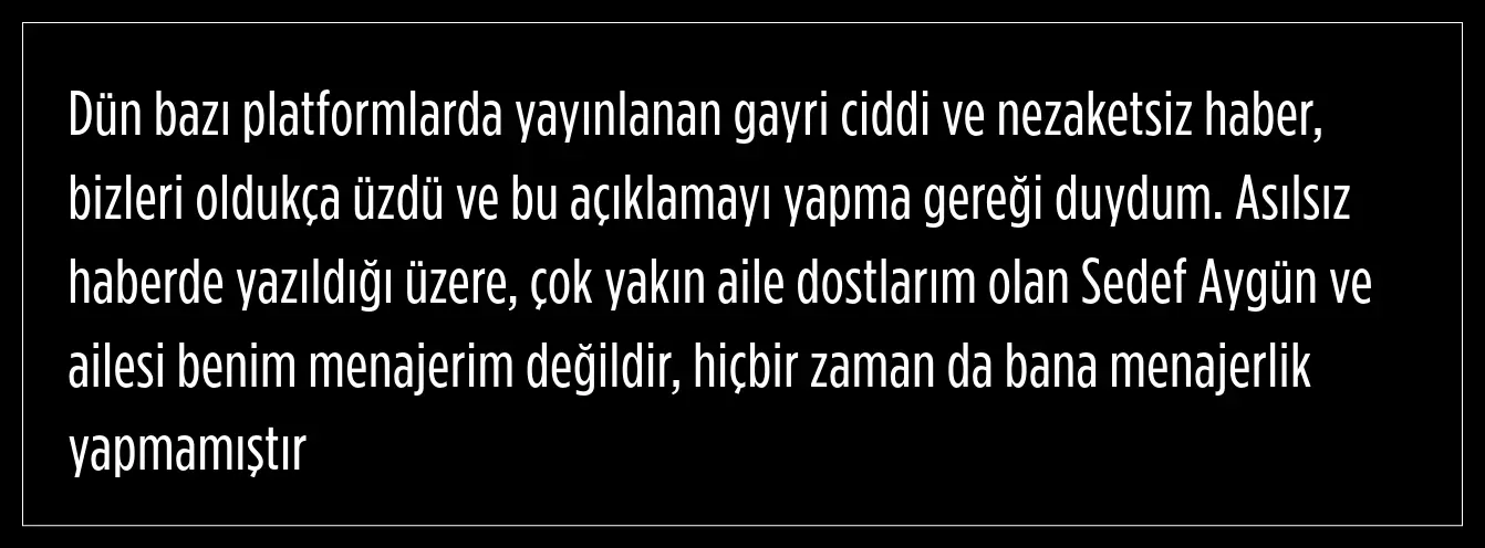 Çıkan gayri ciddi ve nezaketsiz haberin oldukça üzdüğünü ifade eden Pekkan, Sedef Aygün menajeri değil çok yakın arkadaşı olduğunu söyledi.