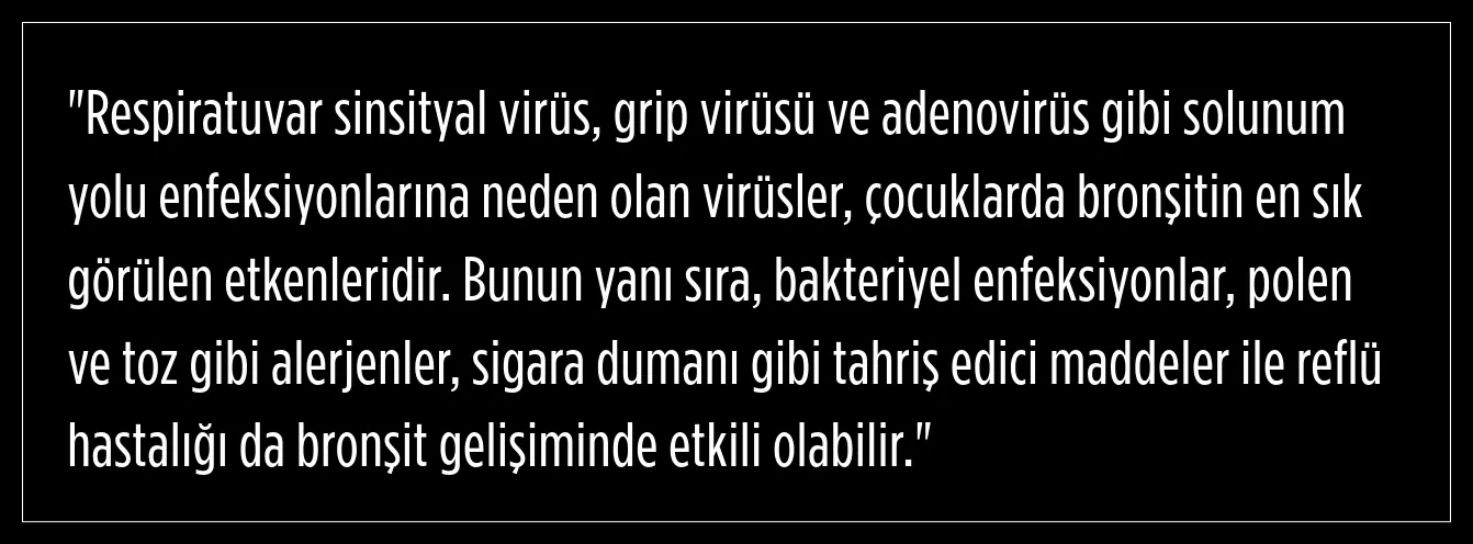 Çocuklarda bronşit vakalarının en yaygın sebeplerini açıklayan Uzm. Dr. Pınar Karadeniz, özellikle viral enfeksiyonların bu hastalığa yol açtığını vurguladı. Karadeniz, şunları söyledi: