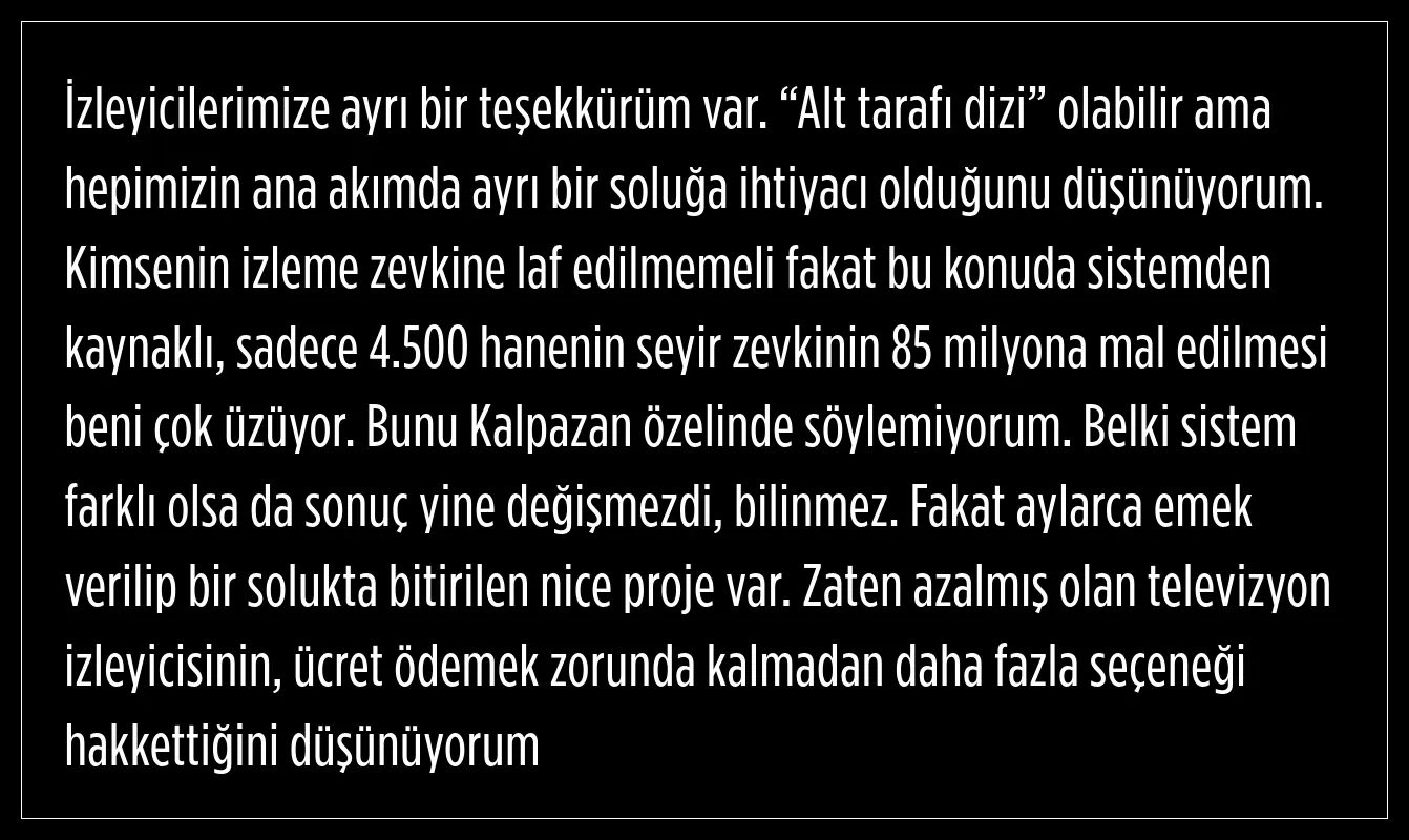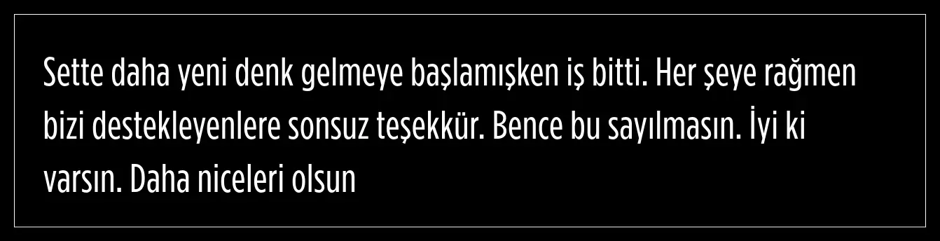 Güzel oyuncu ayrıda X hesabı üzerinden "izleyicilerimize ayrı bir teşekkürüm var" diyerek sitem dolu bir paylaşımda bulundu.