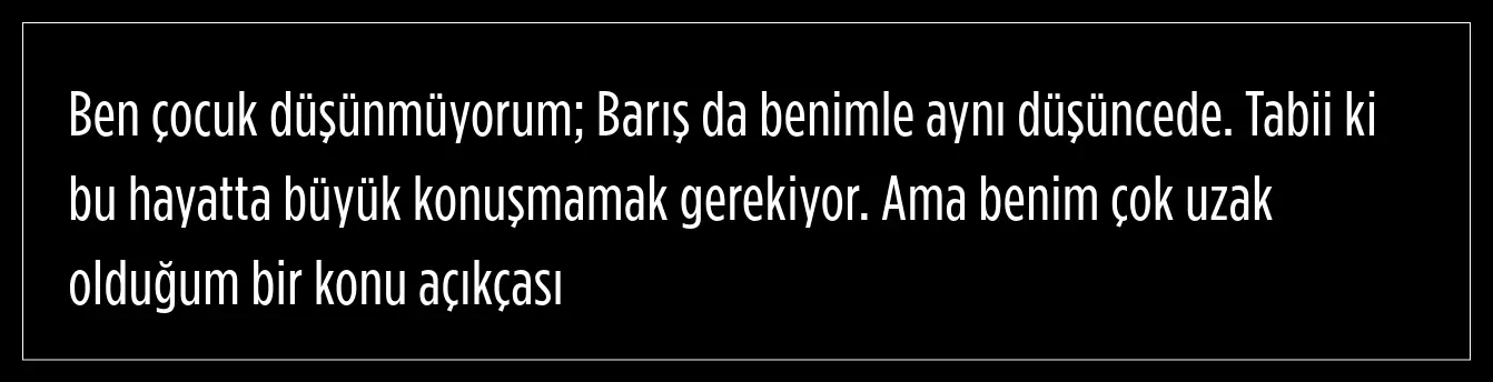 Ünlü oyuncu, bu konuya ilişkin birkaç kez açıklamalarda bulundu. Baysal çocuk düşünmediklerini ifade etti.