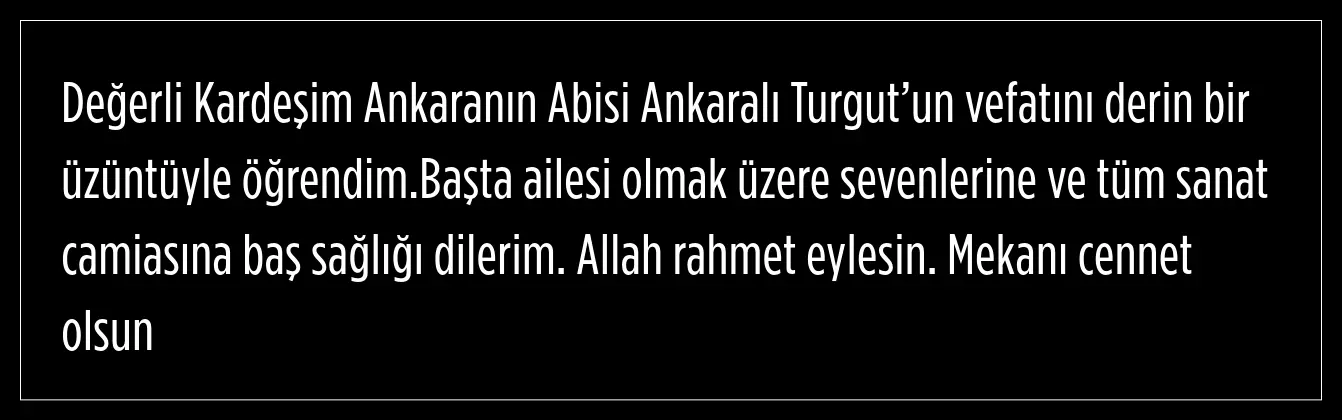 Ankaralı Turgut'tan acı haber geldi: Yaşamını yitirdi!