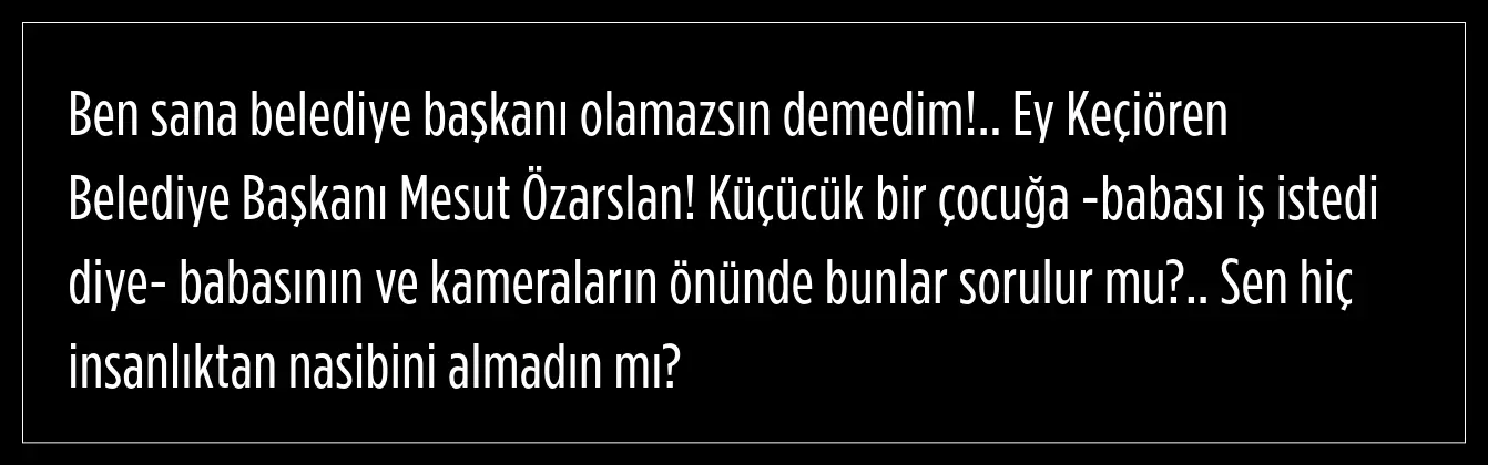 Cumhuriyet Halk Partili Keçiören Belediye Başkanı Mesut Özarslan, yanına bir istek de bulunmak için gelen küçük çocuğa verdiği yanıt ile gündeme geldi.