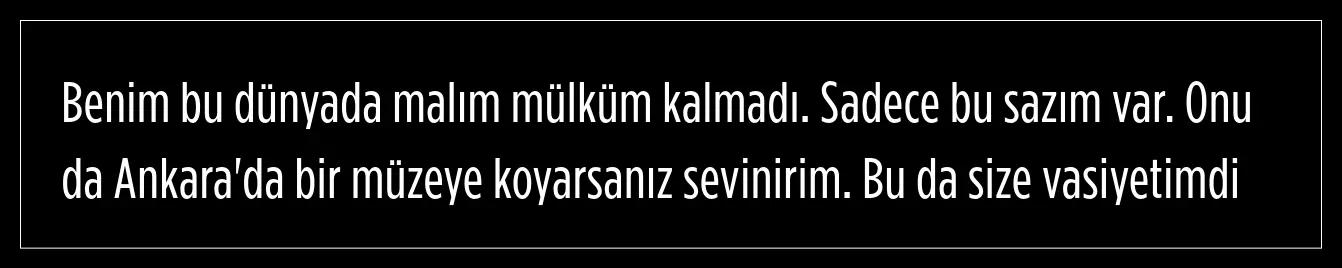 Ünlü şarkıcının vasiyeti de ortaya çıktı. Ankaralı Turgut, verdiği bir röportajda sazının Ankara'da bir müzeye konulmasını istemişti.