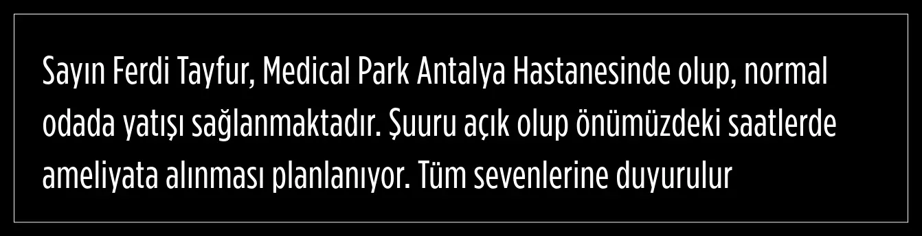 Antalya'da tedavisi süren Ferdi Tayfur, ameliyata alınacak!