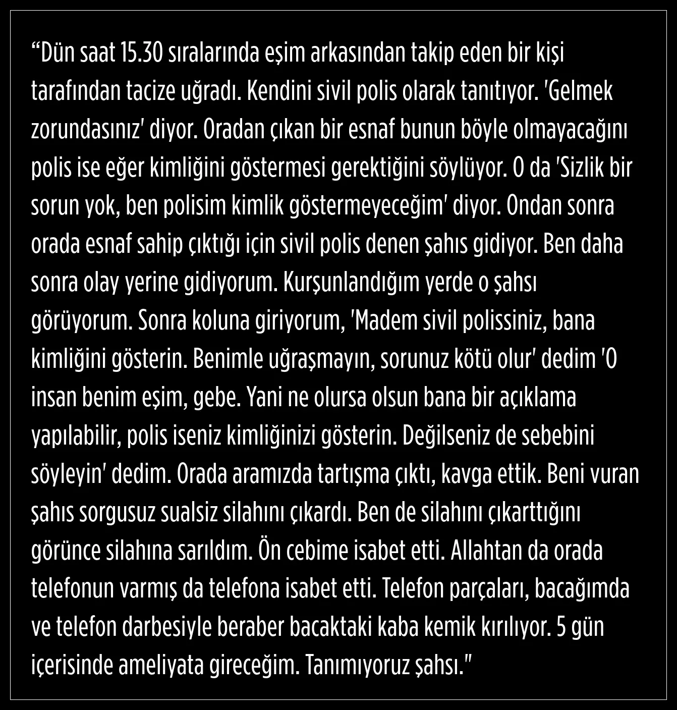 İstanbul'da iki kişi, kendilerini sivil polis olarak tanıtarak hamile kadını götürmek istedi. Kadının, kocasıyla tartışan şüpheliler silahla ateş ederek büyük bir dehşet yarattı.