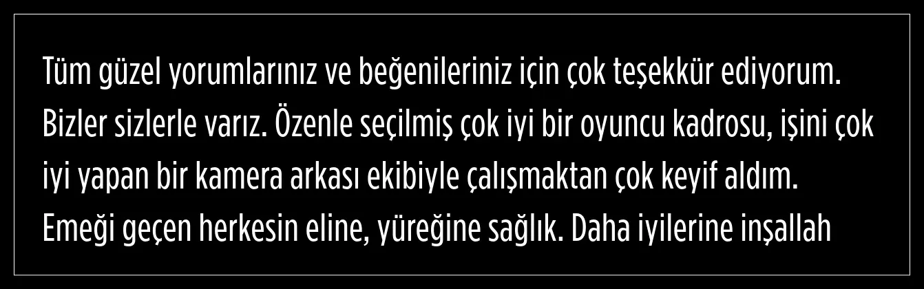Ünlü oyuncu, dizinin tüm ekibine teşekkürlerini iletti. Tekin, şunları söyledi: