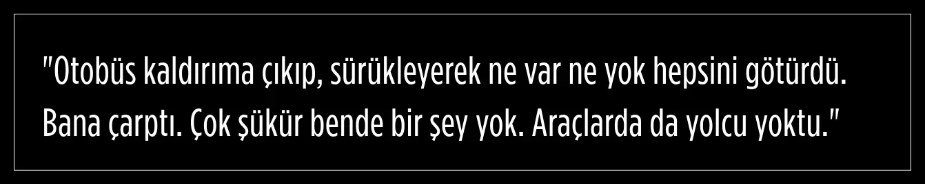 Otobüsün çarptığı hafif ticari aracın sürücüsü Murat Göktepe, kazayı şu sözlerle anlattı: