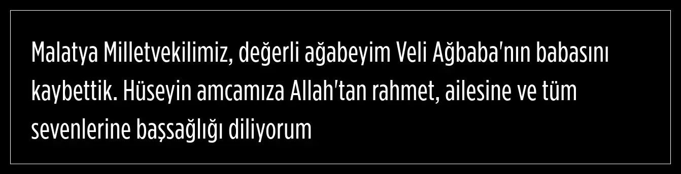 Cenaze namazı, öğlen namazına müteakip kılınacak. Ağbaba, Malatya Şehir Mezarlığı’ndaki aile kabristanına defnedilecek.