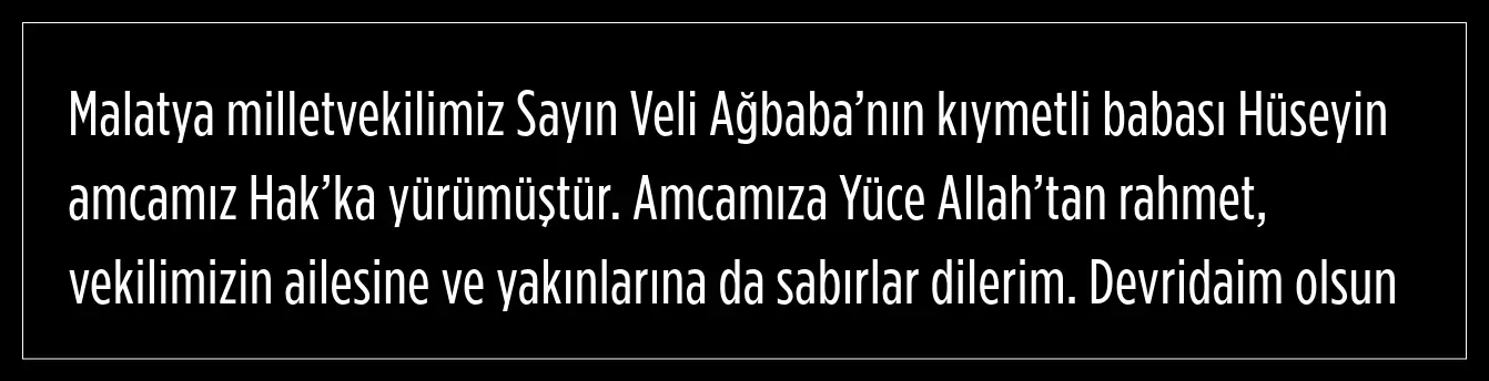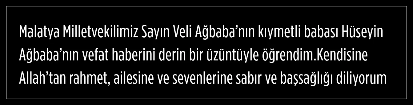 Cumhuriyet Halk Partisi (CHP) Malatya Milletvekili Veli Ağbaba, acı bir haberle sarsıldı.